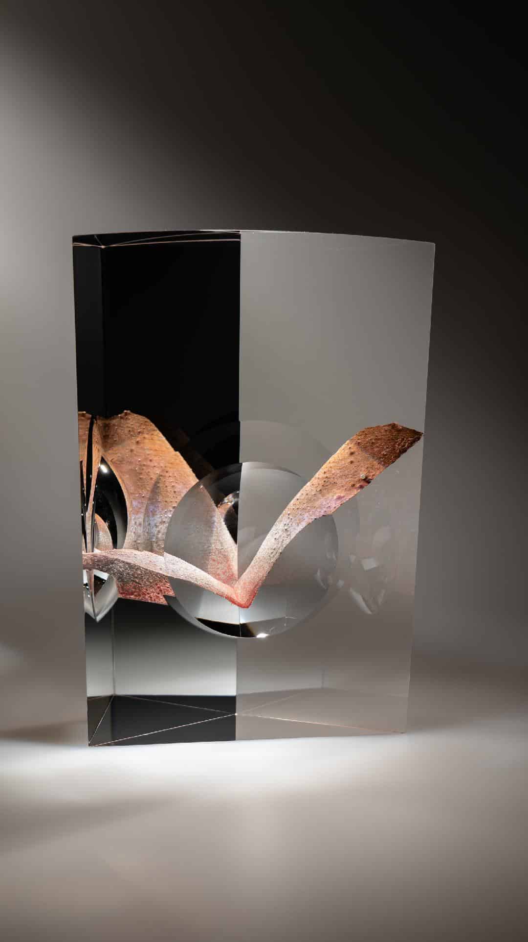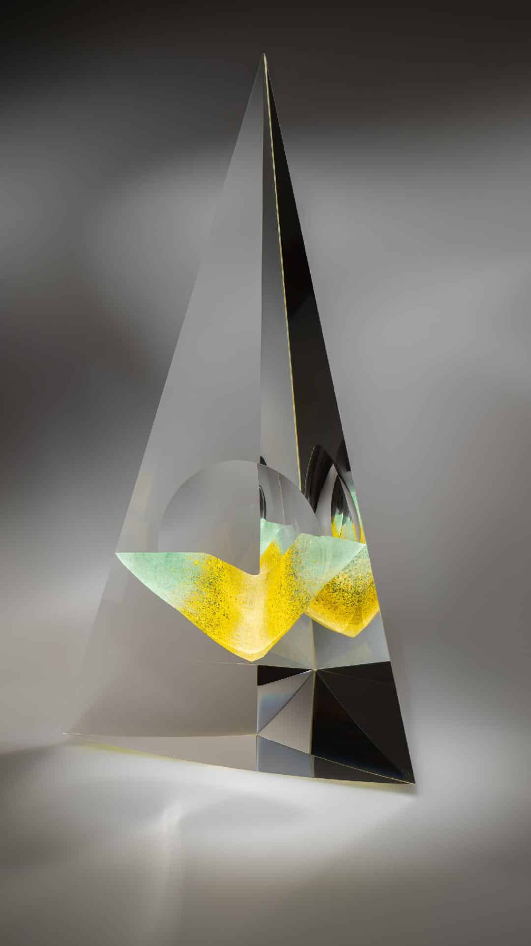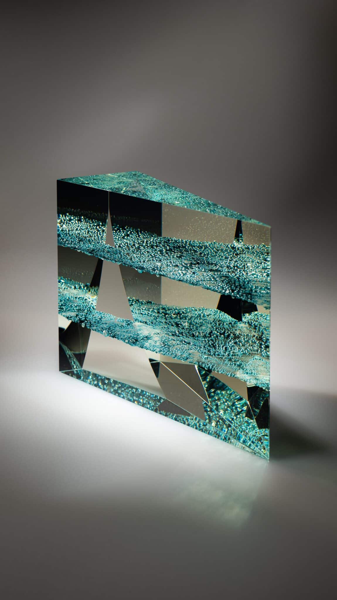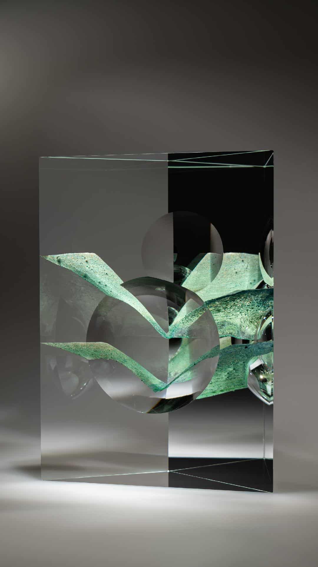 Andrej Jakab s’approprie le verre avec perfectionnisme et minutie, dans une « conversation intime » selon ses termes. « Cela demande énormément de patience et d’humilité », rajoute-t-il. Mêlant une approche instinctive à une connaissance technologique, il compose une forme singulière ainsi qu’une perception spéciale. Andrej Jakab accentue l’abstraction sur des principes géométriques. Son travail attise la curiosité par une relation entre l’intérieur et l’extérieur des volumes géométriques, par une clarté, par des couleurs douces et une référence à l’origine cristalline et à l’infini mystique du verre.