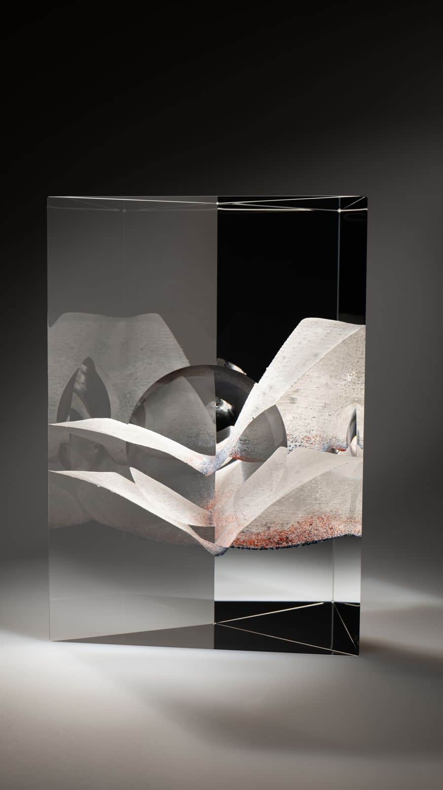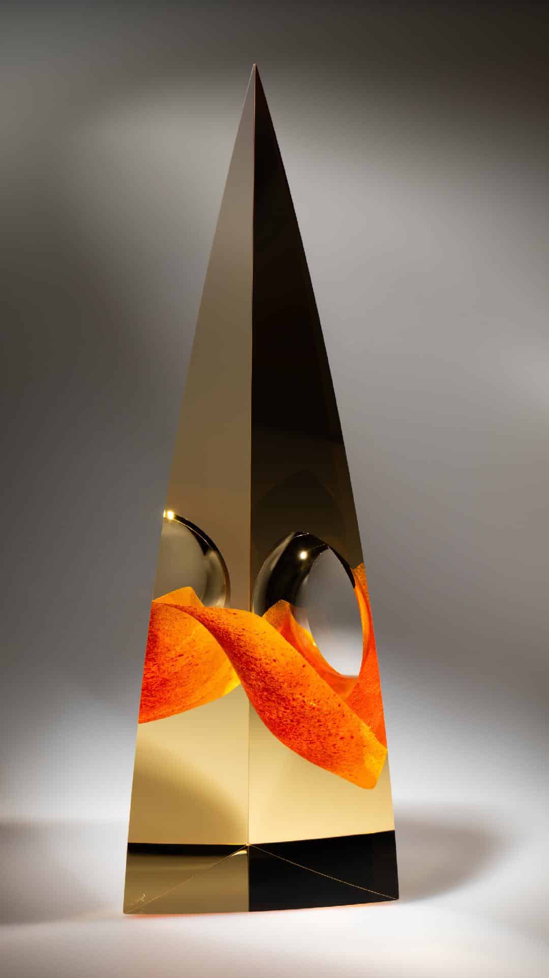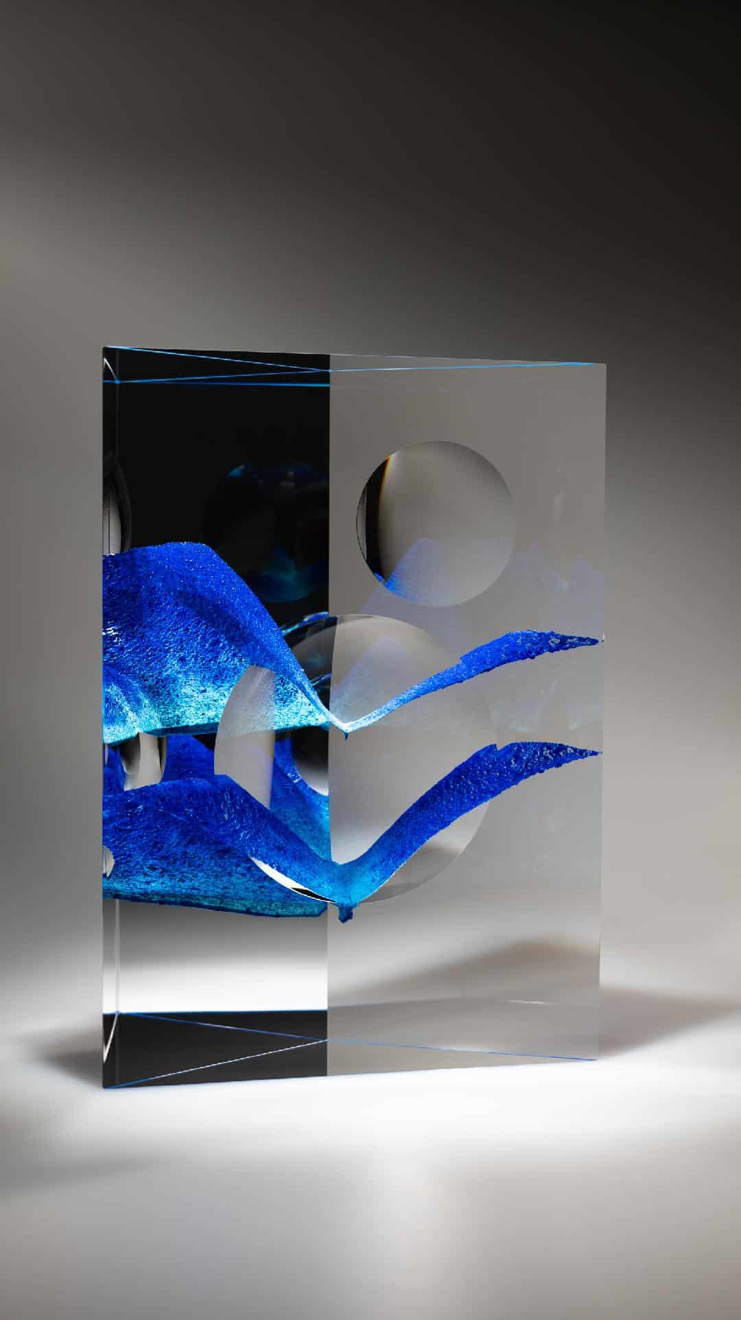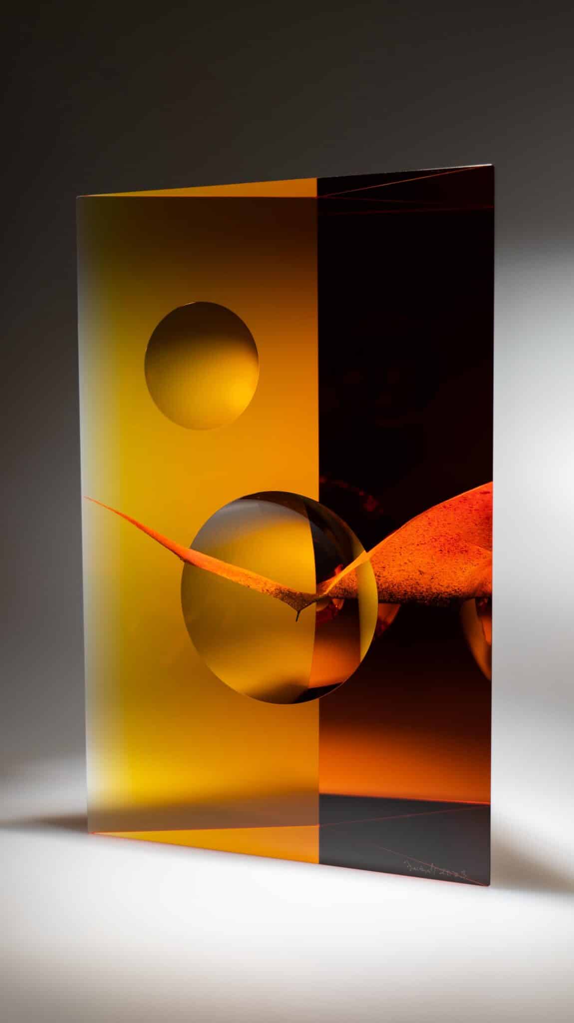 Andrej Jakab s’approprie le verre avec perfectionnisme et minutie, dans une « conversation intime » selon ses termes. « Cela demande énormément de patience et d’humilité », rajoute-t-il. Mêlant une approche instinctive à une connaissance technologique, il compose une forme singulière ainsi qu’une perception spéciale. Andrej Jakab accentue l’abstraction sur des principes géométriques. Son travail attise la curiosité par une relation entre l’intérieur et l’extérieur des volumes géométriques, par une clarté, par des couleurs douces et une référence à l’origine cristalline et à l’infini mystique du verre.