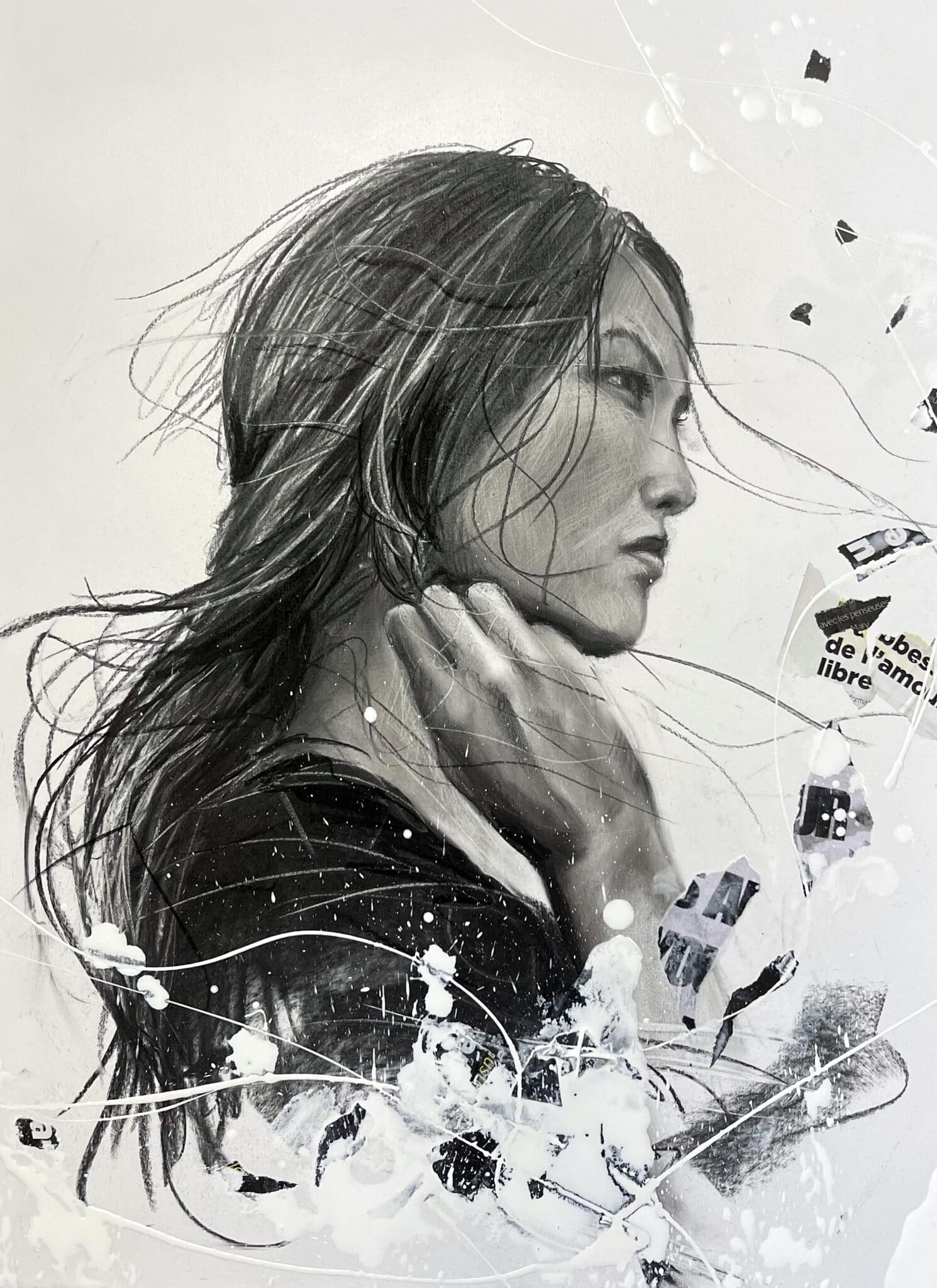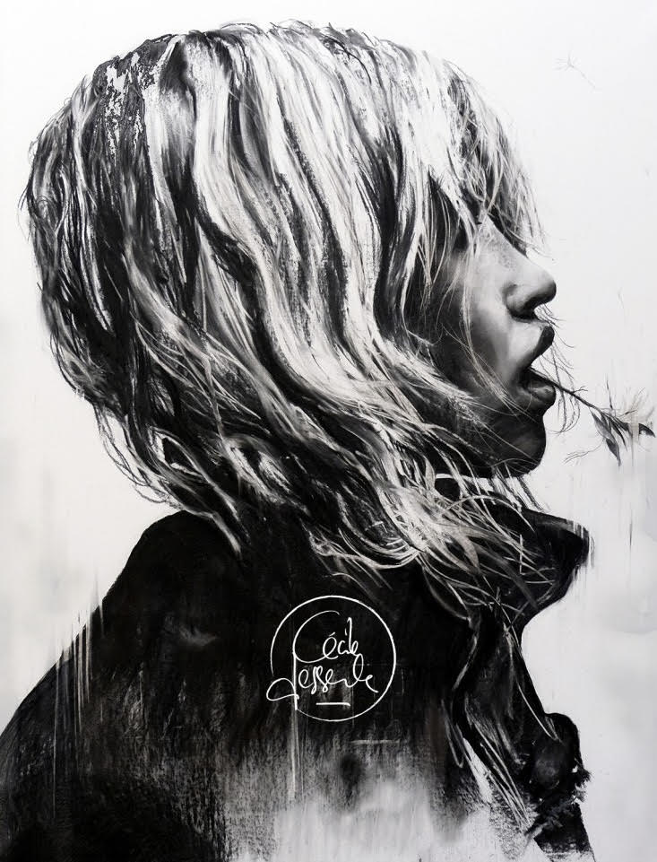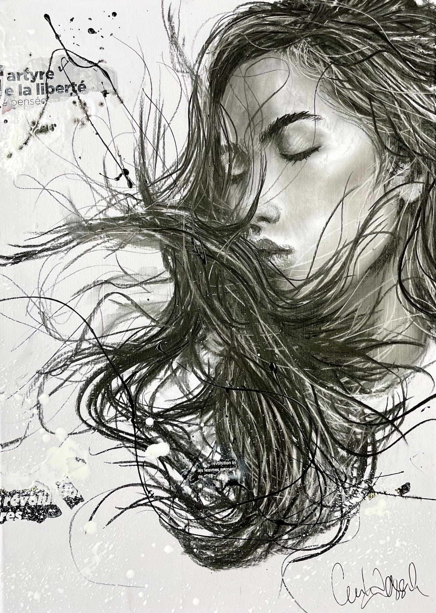 Rebelle, Cécile Desserle déroute souvent son public proposant en travail en perpétuel renouvellement. Ces nombreux collectionneurs aiment ce tourbillon de force et de mouvement autour de la féminité. Fusain, huile, aérosol, collage, encre, tous au service de sa créativité.