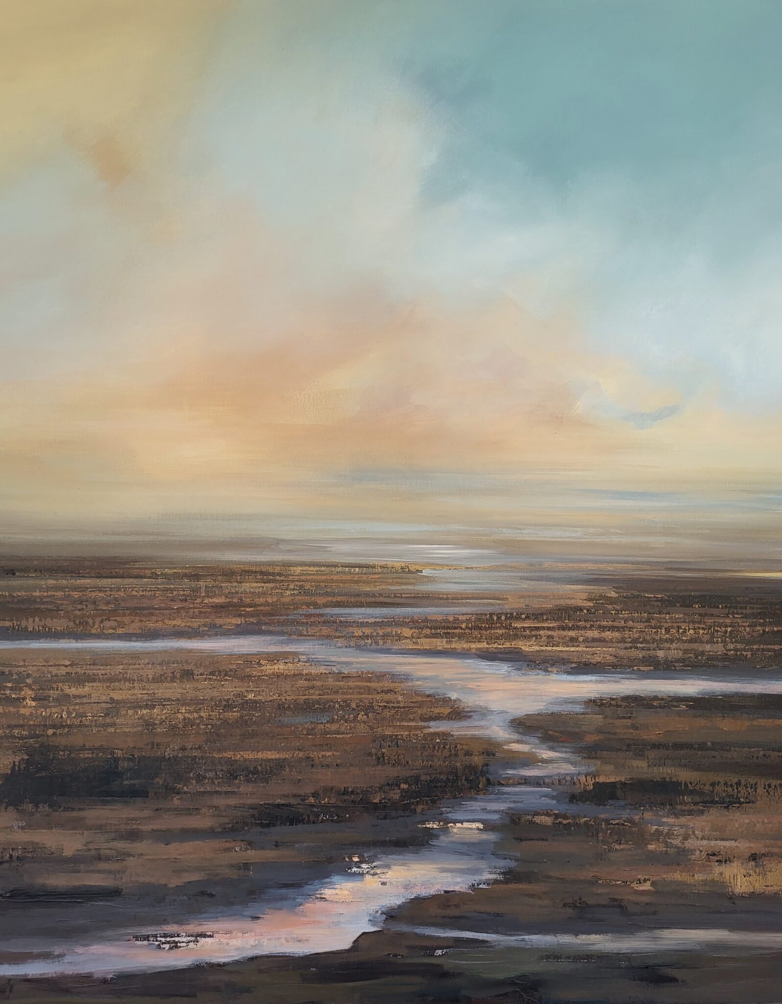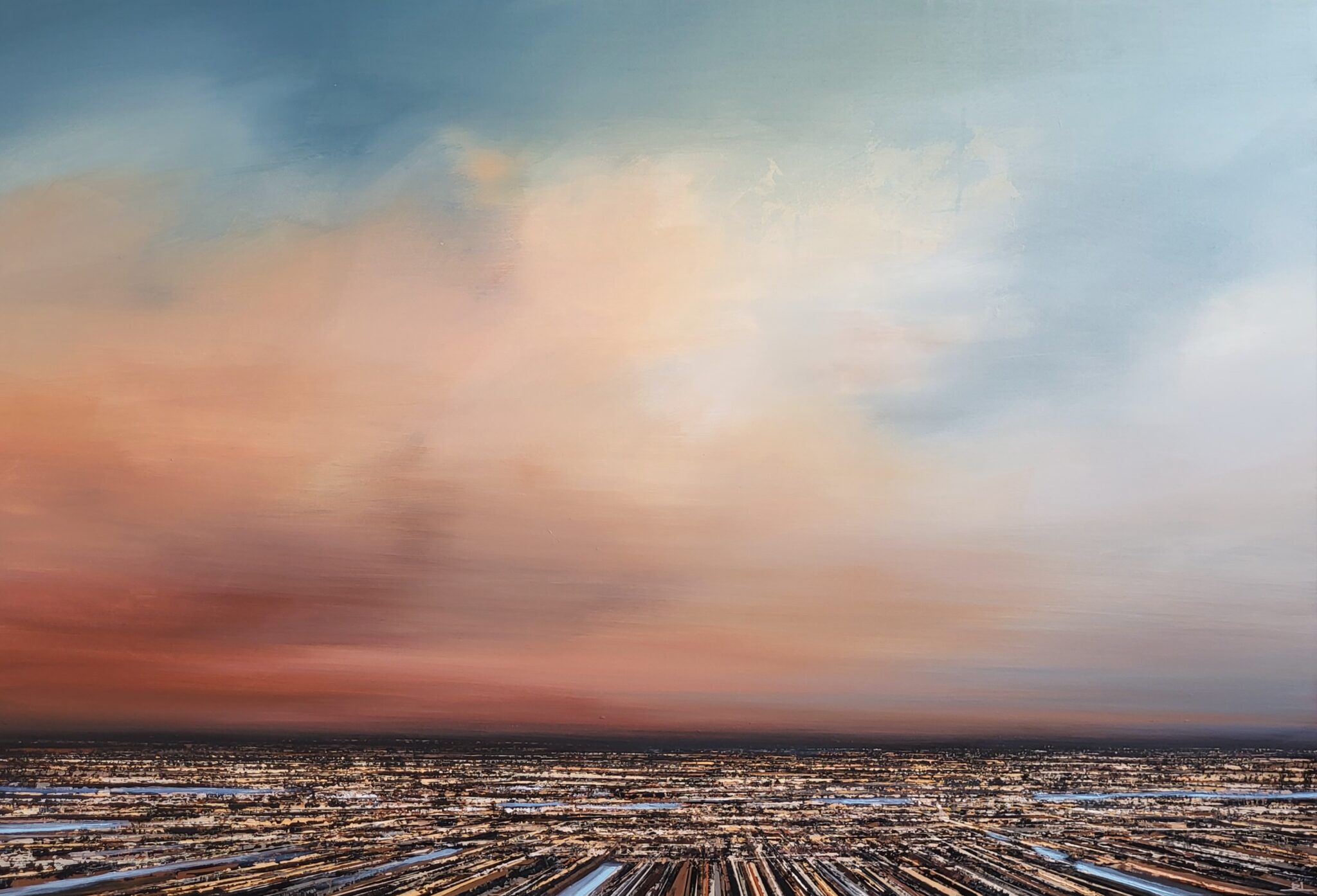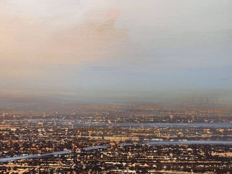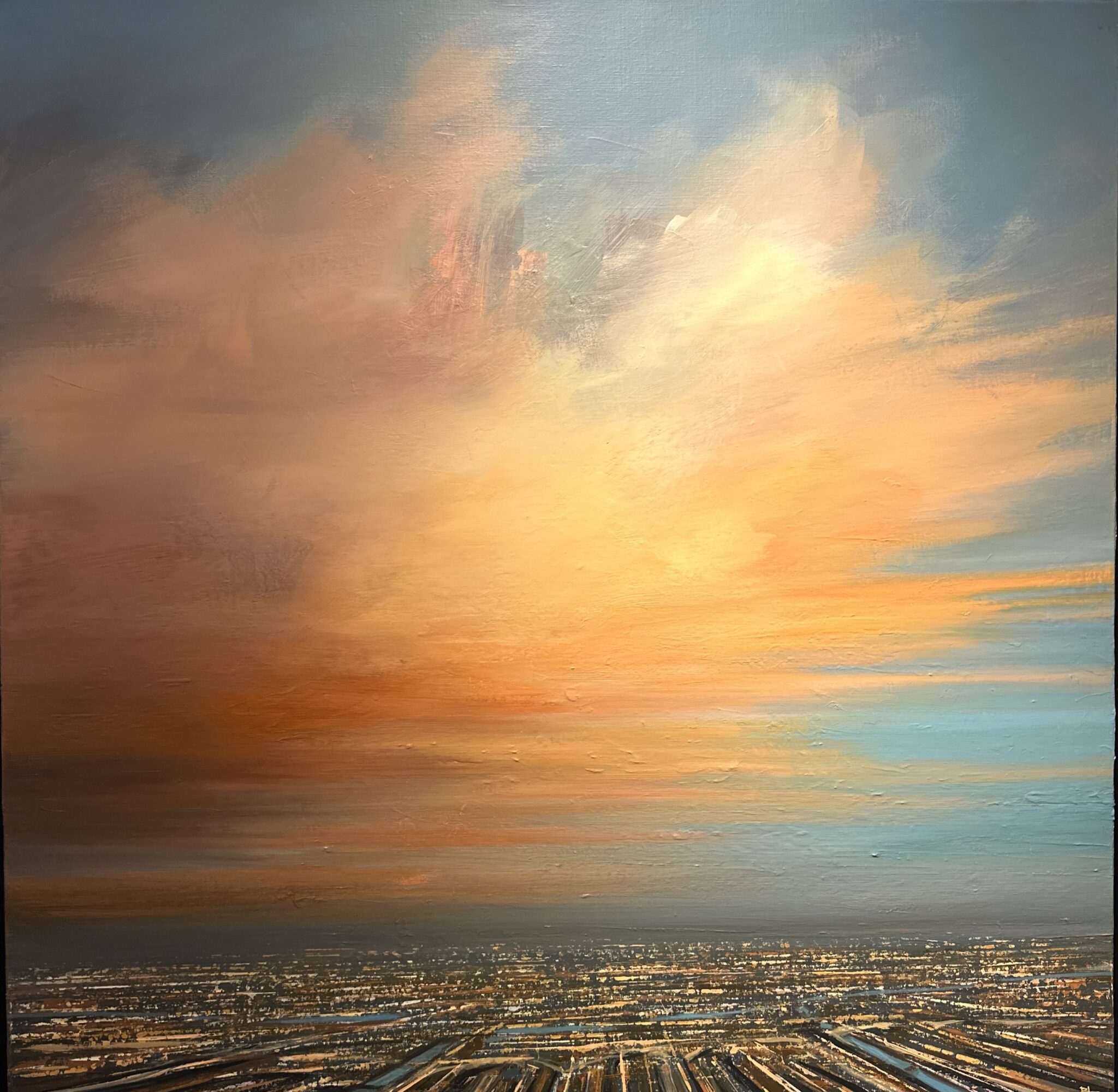 Je cherche à restituer dans mes toiles ces sensations et émotions, en tentant de capter le flottement de la lumière, de suivre la fuite des nuages, de pénétrer la trame des métropoles et leurs scintillements.