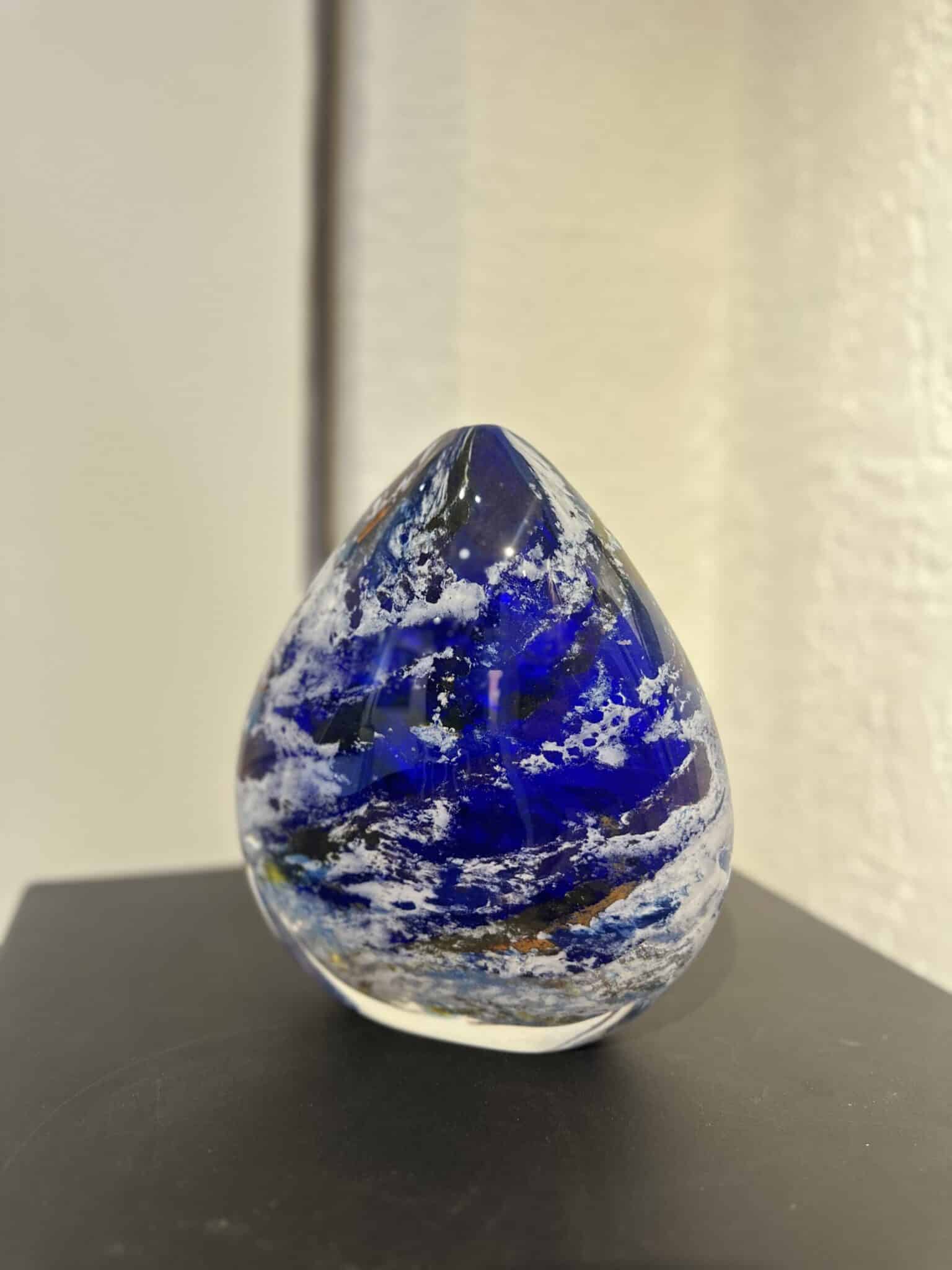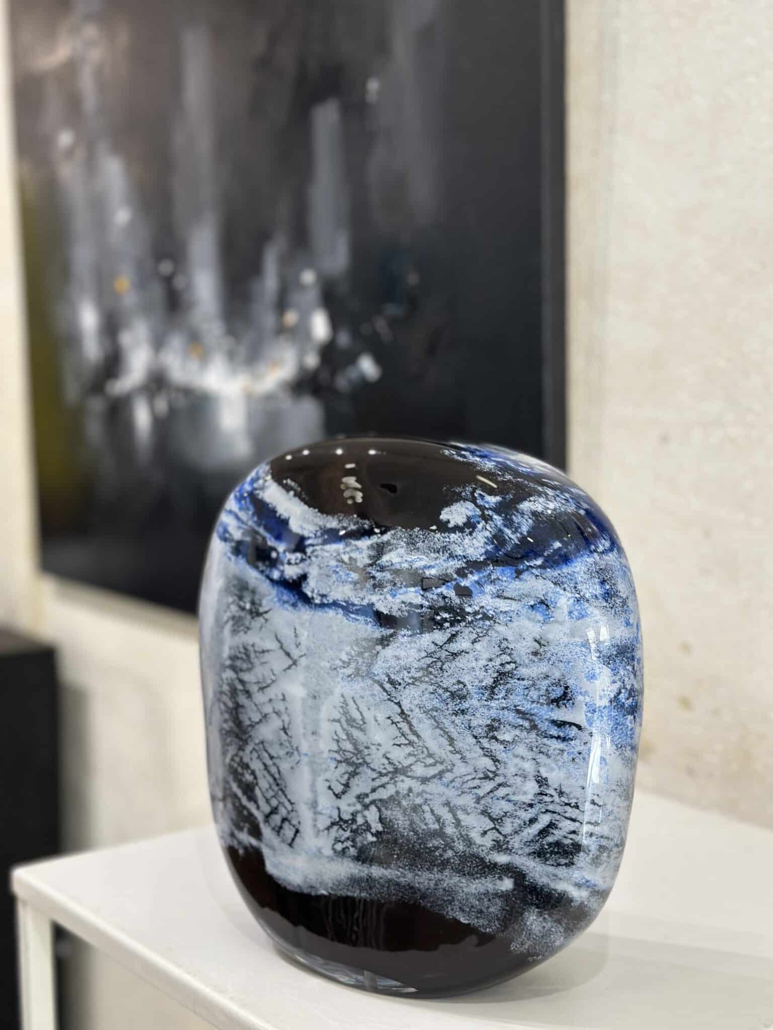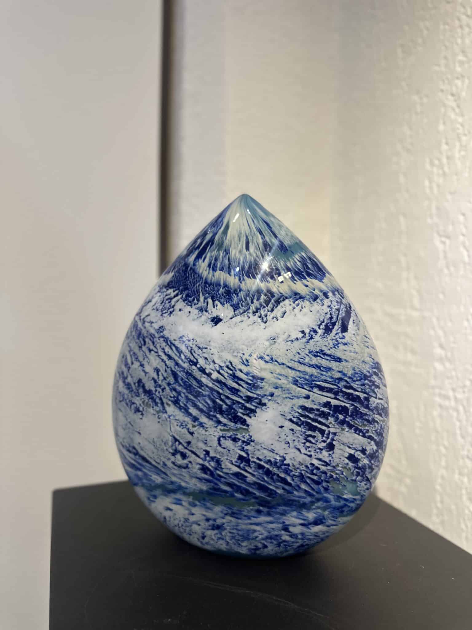 Dans ses séries d’œuvres Léo capture des instants suspendus, entre la terre, la pierre et l’eau. Il assemble du verre coloré et travaillé qu’il soumet à la chaleur, créant des œuvres aux formes et couleurs uniques. Chaque sculpture devient un instant figé de la nature : une montagne sous l’eau, une coulée de lave, ou encore les changements de couleurs d’un lever de soleil.