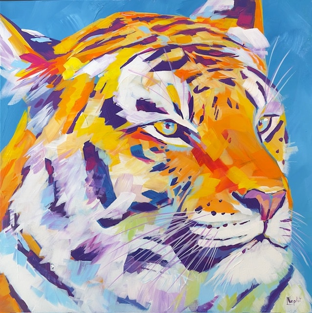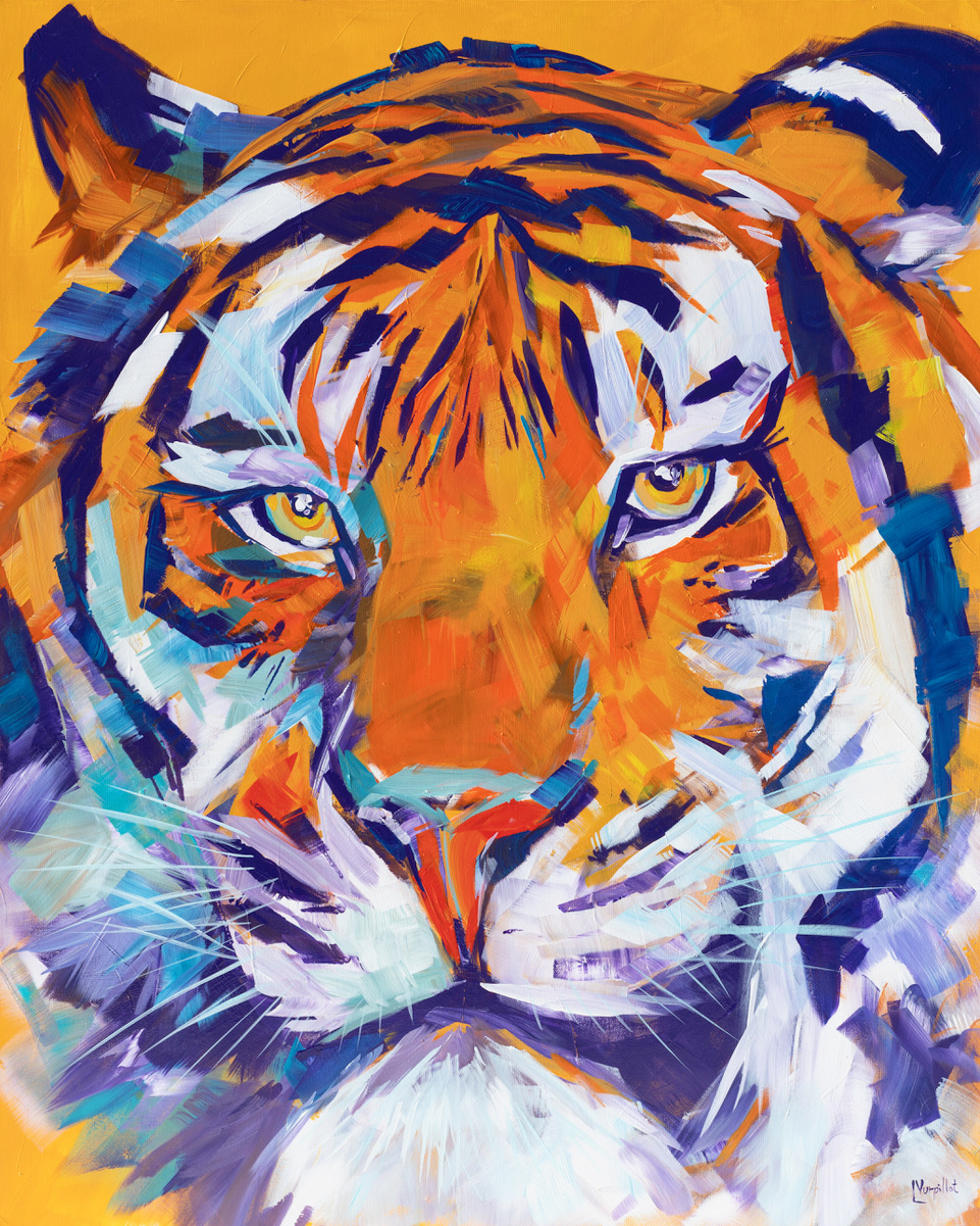 Lise, par sa maîtrise de la couleur, sait rendre hommage au sujet. Les fauves, lions ou tigres, sont les animaux centraux du bestiaire de cette jeune peintre pontissalienne. Elle les représente souvent de manière frontale, profitant au mieux de leur fourrure pour jouer sur les couleurs.