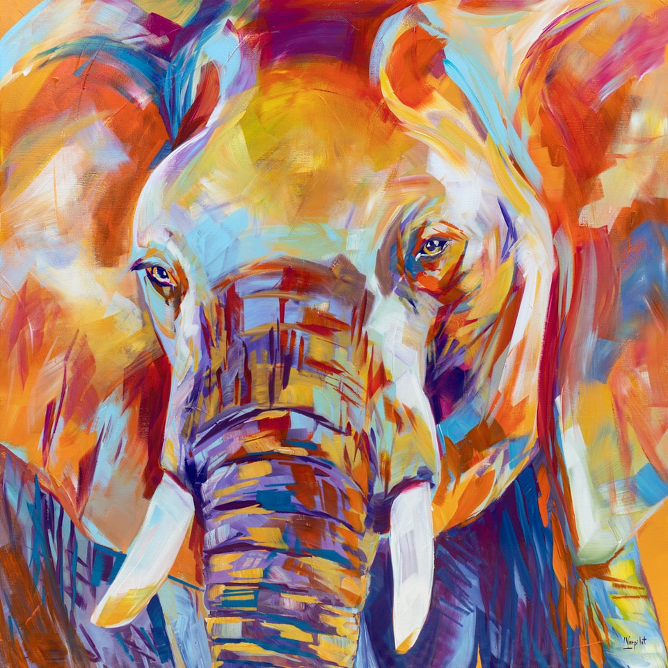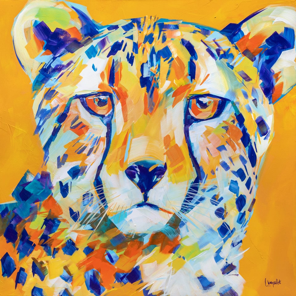 Ainsi ces nouvelles toiles, toute en puissance, sont éclatantes de présence. Les animaux ne sont plus noyés dans leur fourrure exubérante, mais au contraire mis en exergue sur un fond à la feuille d’or. Plus volontiers de profil, on observe à loisir le mouvement du corps, jusqu’à la musculature de ces bêtes. Lise ne peint plus des rois, mais des dieux !