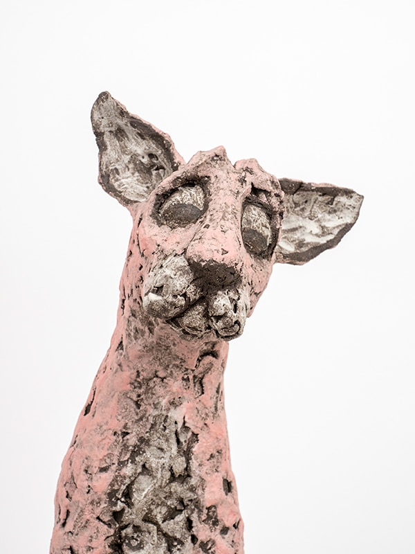Parmi ses créations emblématiques : les « Peuchère », petits êtres en grès engobé, au nom emprunté à une expression marseillaise signifiant « pauvre malheureux ». Chiens, chats, oiseaux, lapins ou poissons… tous incarnent une humanité fragile et touchante, rappelant les personnages chantés par Anne Sylvestre, « qui doutent, qui tremblent, qui promènent leurs automnes au printemps… ».