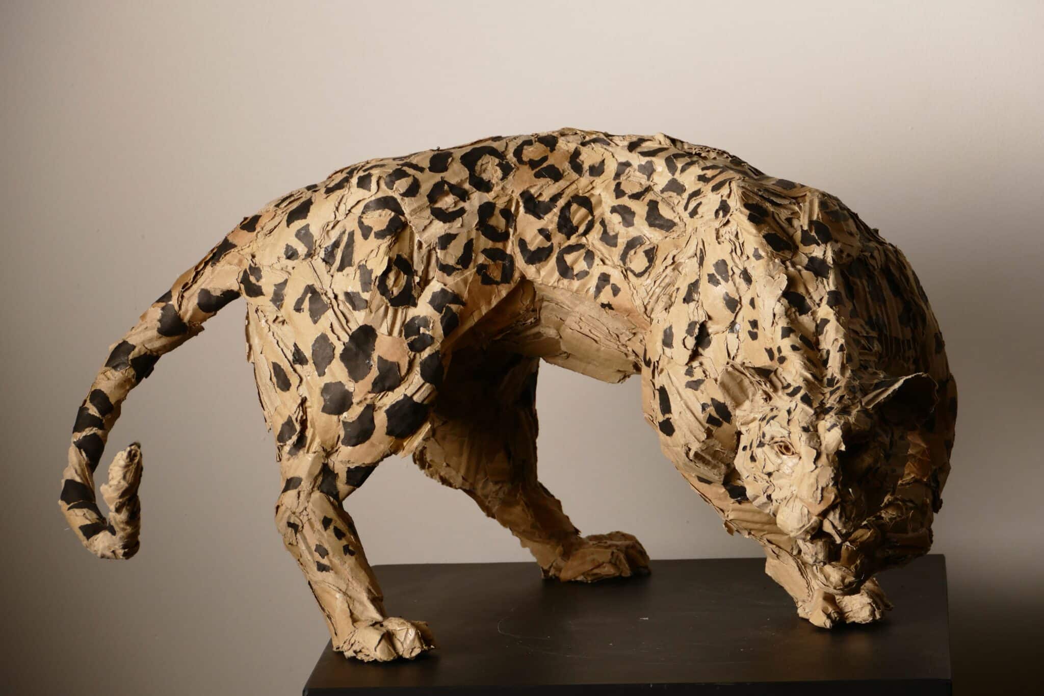Olivier Bertrand est un sculpteur contemporain qui a choisi le carton comme terrain de jeu. Un matériau simple, presque anodin, qu’il transforme avec une précision éblouissante en œuvres pleines de vie, de caractère et de poésie.